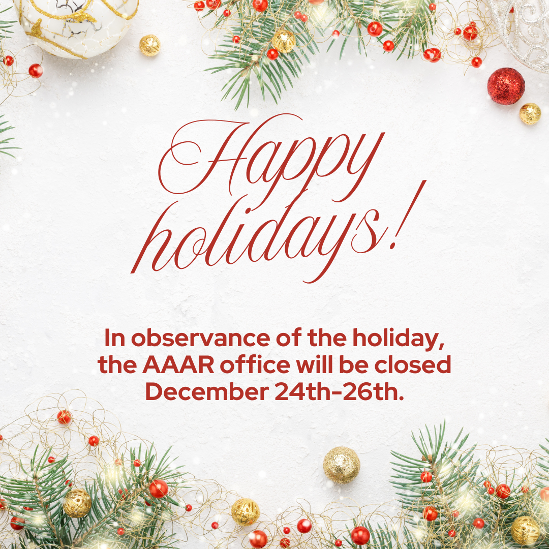 December 24-26 - AAAR Office Closed for the Holidays