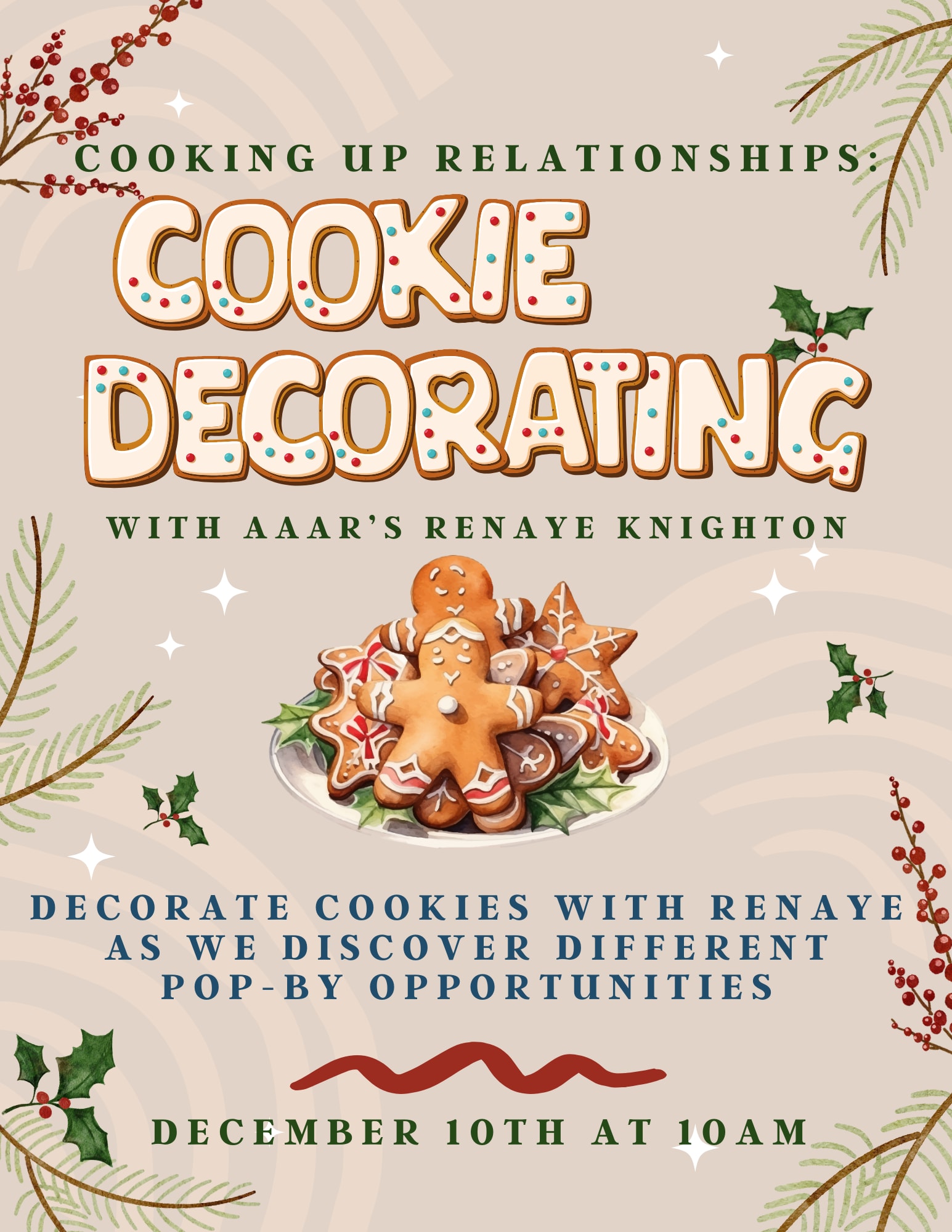 Come decorate sugar cookies with Renaye! Whether you’re a seasoned decorator or a first-timer, bring your creativity and let’s turn simple sugar cookies into edible works of art! We’ll not only beautify cookies but also discuss creative pop-by opportunities together so you can stay connected with clients, friends, and neighbors.Images
