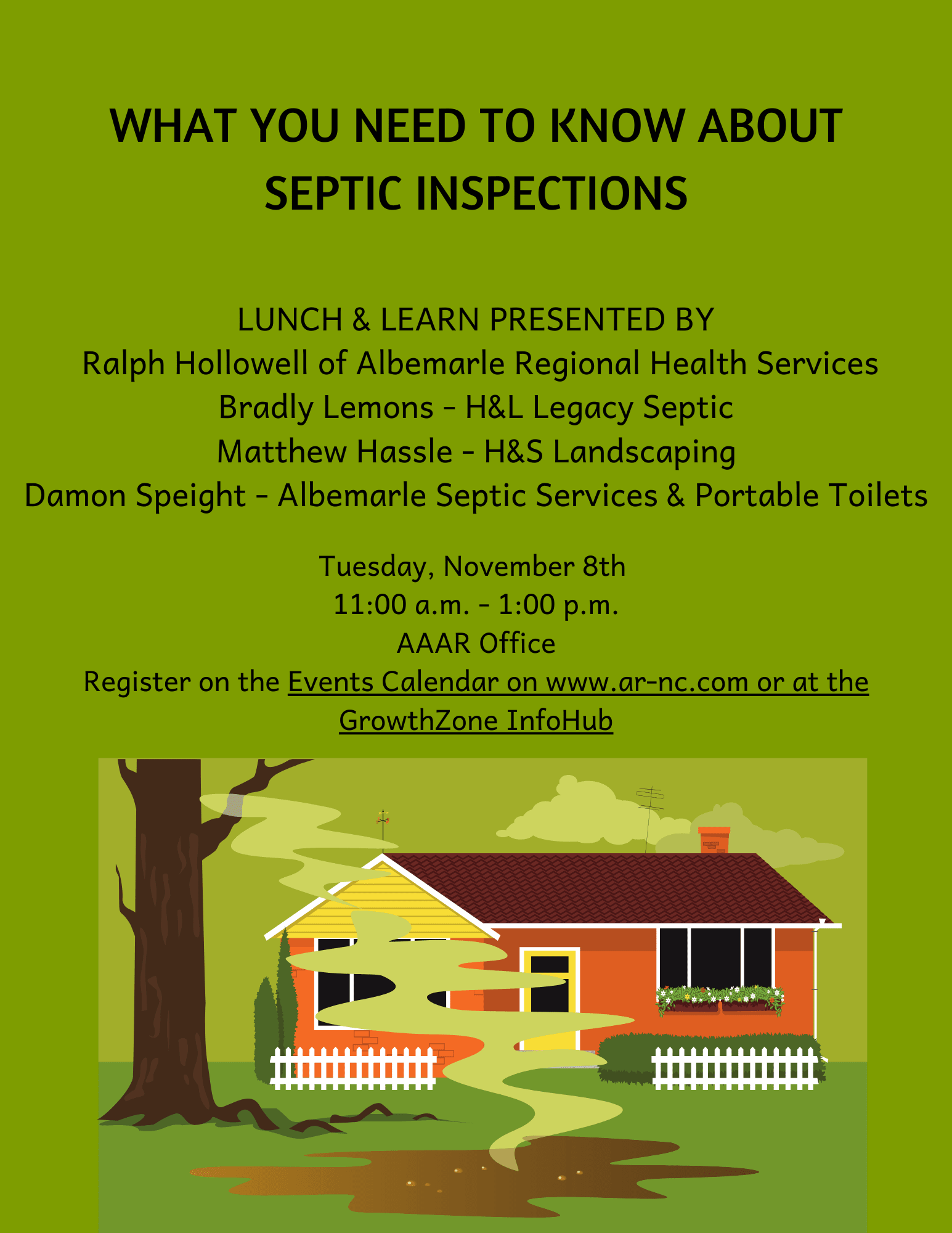Lunch & Learn - presented by Ralph Hollowell of Albemarle Regional Health Services; Bradly Lemons of H&L Legacy Septic; Matthew Hassle of H&S Landscaping; and Damon Speight of Albemarle Septic Services & Portable Toilets.